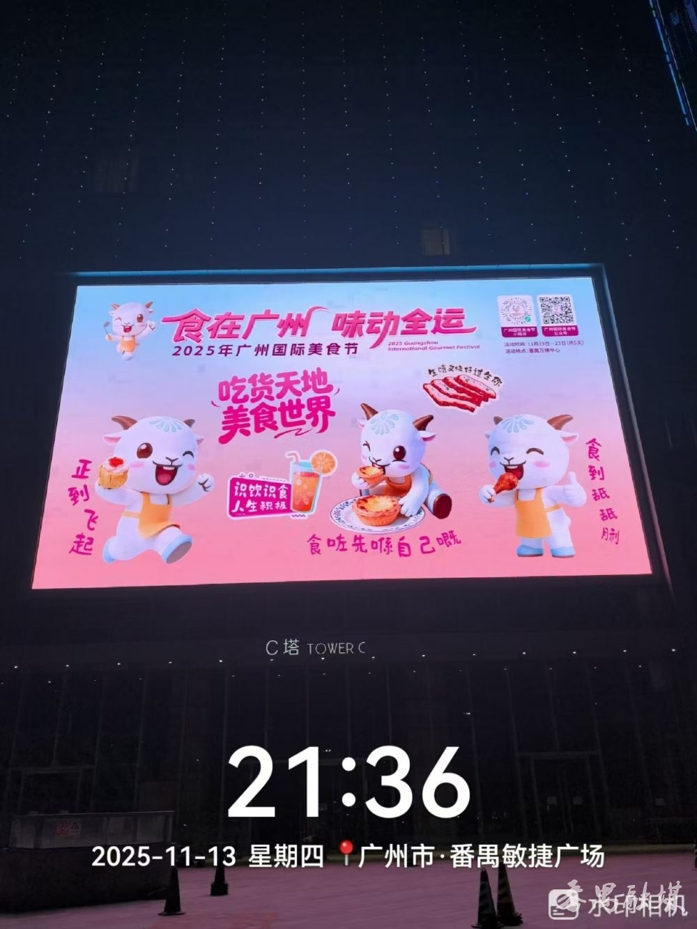 万博中心的电子显示屏营造广州国际美食节氛围
